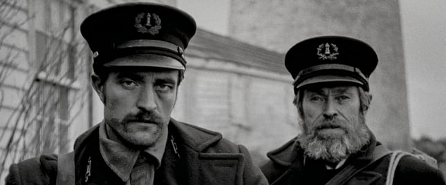 The towering lighthouse itself becomes a character, its beam cutting through the darkness like an omniscient eye, both guiding and tormenting the men below. The framing of each shot feels deliberate and painterly, capturing the raw power of the sea, the suffocating confines of the lighthouse quarters, and the eerie isolation of the island. The film’s visuals are not just striking—they are an extension of its themes, reflecting the characters’ descent into madness.